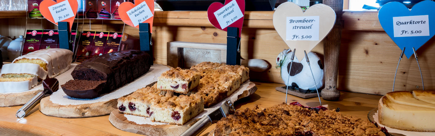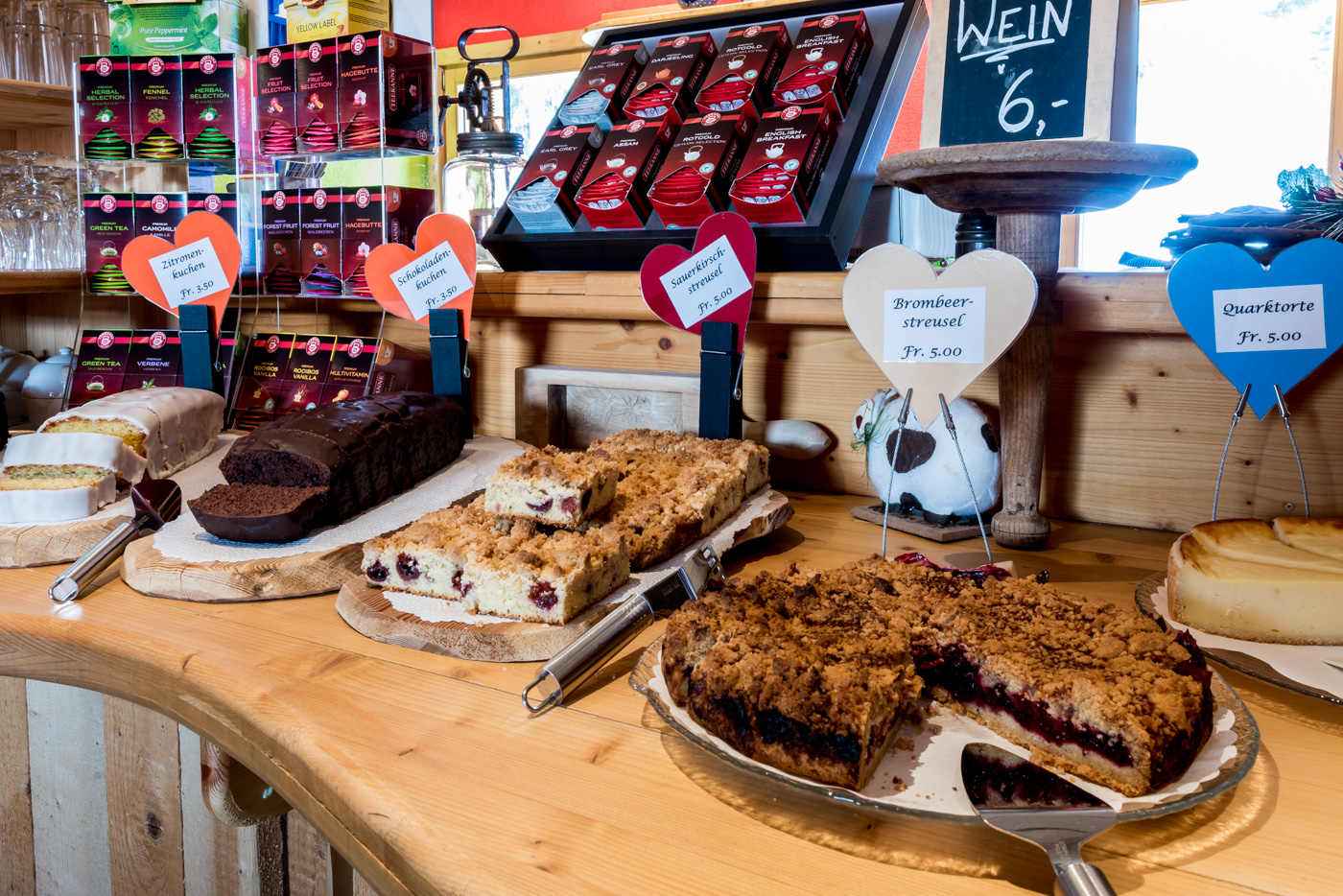 In unserem heimeligen Loipenkaffee bieten wir eine sehr grosse Auswahl hausgemachter Kuchen an. Lassen Sie sich von unseren warmen Kaffee- und Teespezialitäten, sowie kalten Erfrischungsgetränken verwöhnen.